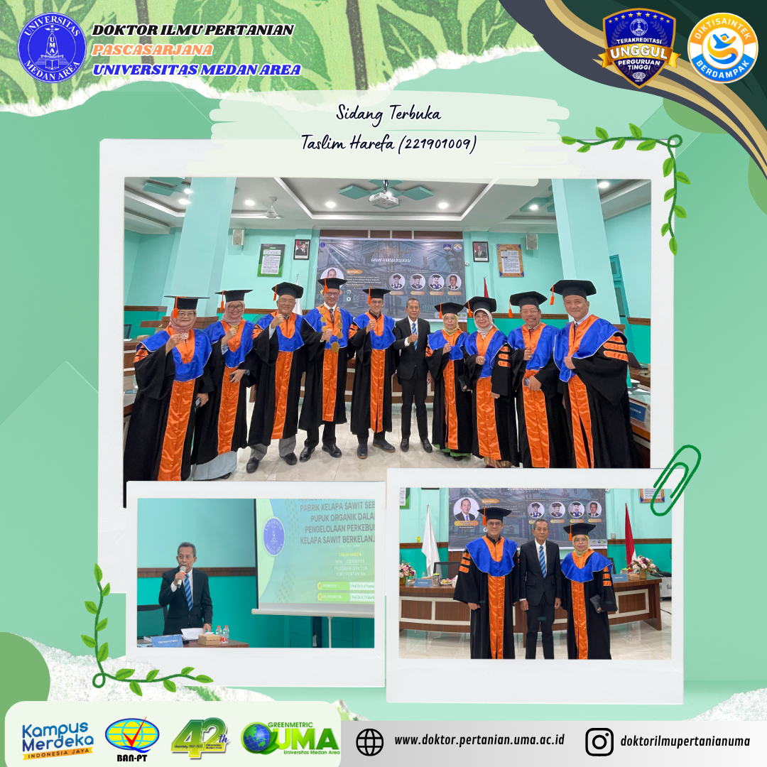 Sidang Terbuka Promosi Doktor – Program Studi Doktor Ilmu Pertanian an. Taslim Harefa Posted on October 29, 2025October 30, 2025 by Doktor Ilmu Pertanian 0 Medan, 29 Oktober 2025 – Pascasarjana Universitas Medan Area kembali menyelenggarakan Sidang TerContinue Reading