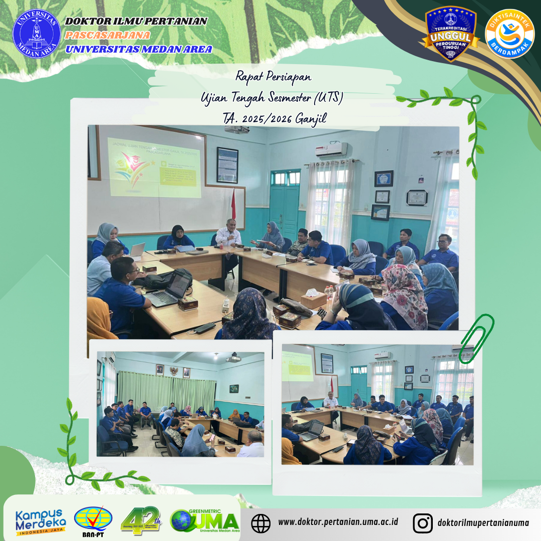 Rapat Persiapan Ujian Tengah Semester Ganjil TA 2025/2026 Program Pascasarjana Universitas Medan Area Posted on November 5, 2025 by Doktor Ilmu Pertanian 0 Medan, 3 November 2025 – Program Pascasarjana Universitas Medan Area (UMA) menggelar Rapat PersiContinue Reading