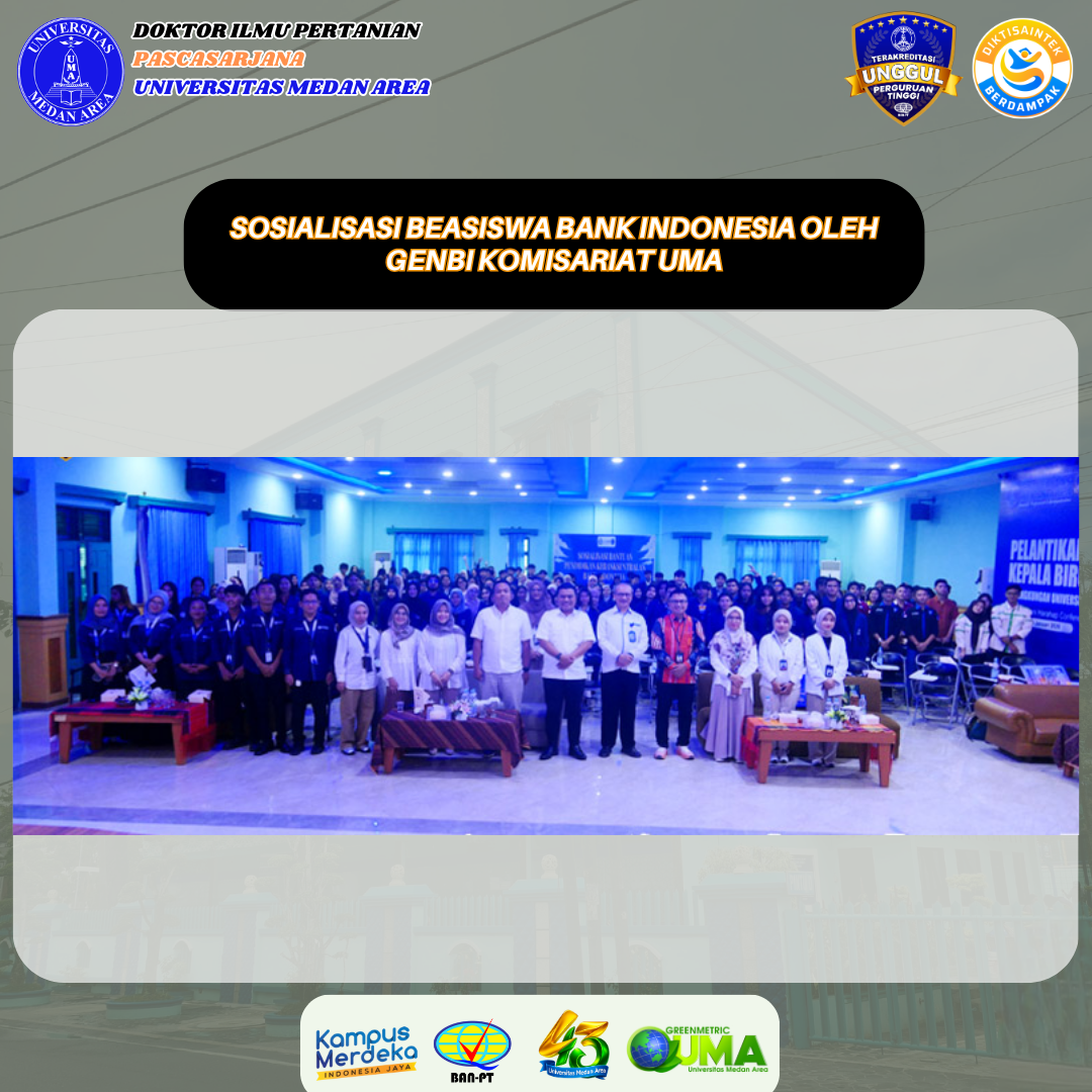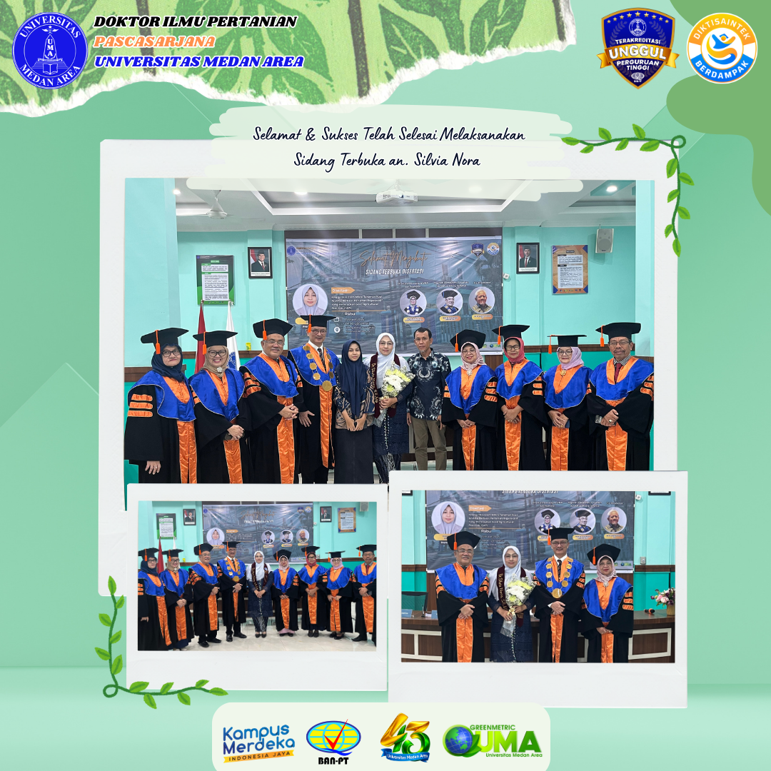 Sidang Terbuka Promosi Doktor Mahasiswa Program Studi Doktor Ilmu Pertanian an. Silvia Nora Posted on March 11, 2026March 16, 2026 by Doktor Ilmu Pertanian 0 Program Studi Doktor Ilmu Pertanian Universitas Medan Area telah melaksanakan Sidang Terbuka PromosiContinue Reading
