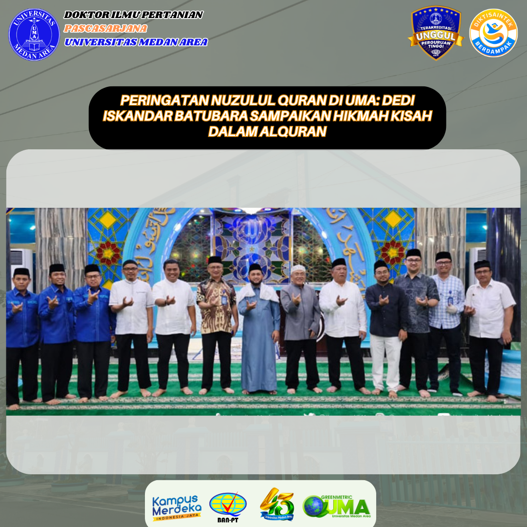 Peringatan Nuzulul Quran di UMA: Dedi Iskandar Batubara Sampaikan Hikmah Kisah dalam Alquran Posted on March 6, 2026March 16, 2026 by Doktor Ilmu Pertanian 0 Universitas Medan Area (UMA) bersama Yayasan Pendidikan Haji Agus Salim (YPHAS) menggelar peringatanContinue Reading
