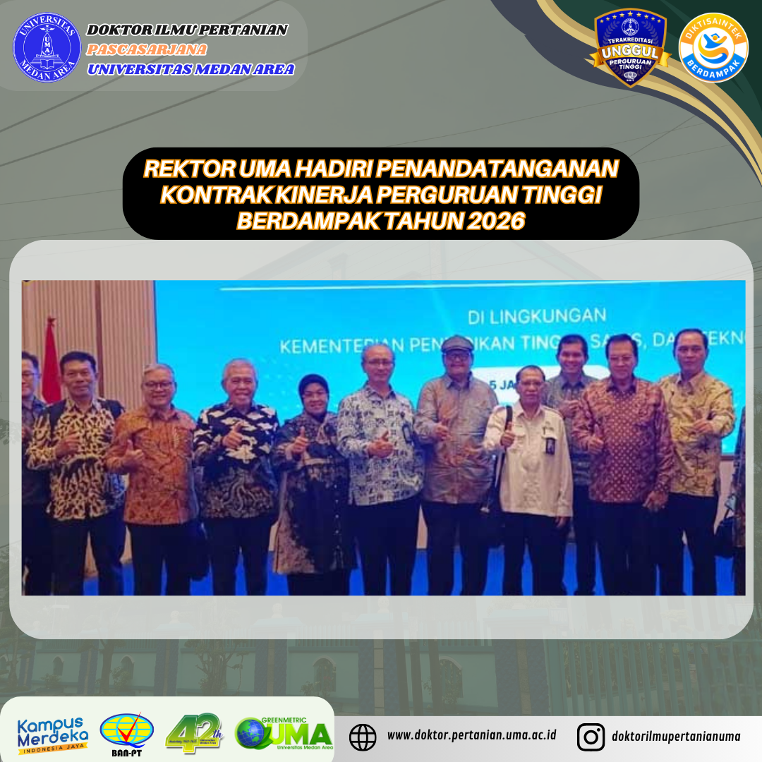 Rektor UMA Hadiri Penandatanganan Kontrak Kinerja Perguruan Tinggi Berdampak Tahun 2026 Posted on January 9, 2026January 28, 2026 by Doktor Ilmu Pertanian 0 Universitas Medan Area (UMA) kembali menegaskan komitmennya dalam mendukung kebijakan strategis pendContinue Reading